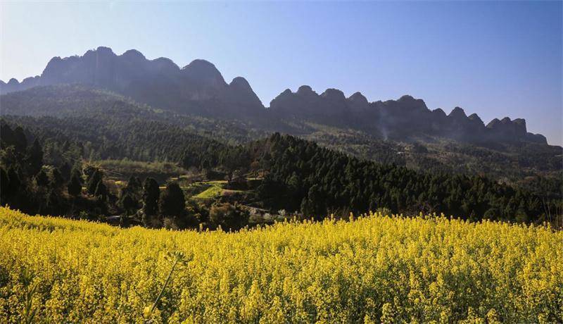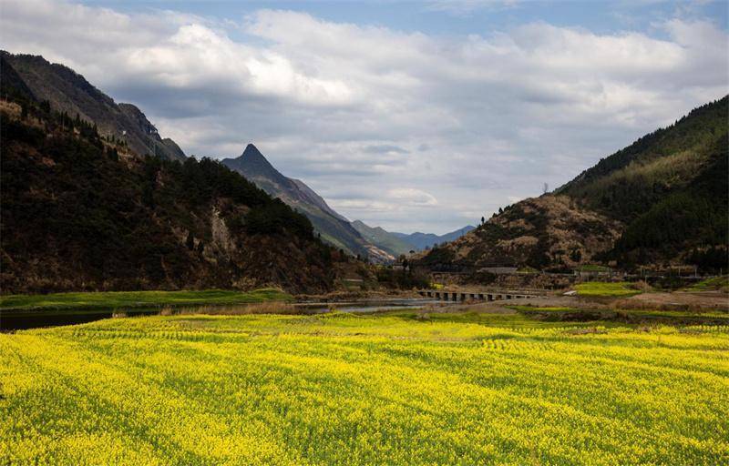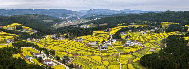 春日的四川剑阁,漫山遍野的油菜依山就势、梯次绽放,金黄绵延,层层叠叠,铺展在蜀道山川之间,将田野变作天然的大地调色盘。这片错落有致的金色花海,不仅为八方游客奉上沉浸式的春日视觉盛宴,更激活了乡村旅游新动能,让农旅融合的画卷在剑阁大地上徐徐展开。(阳林玥)